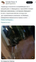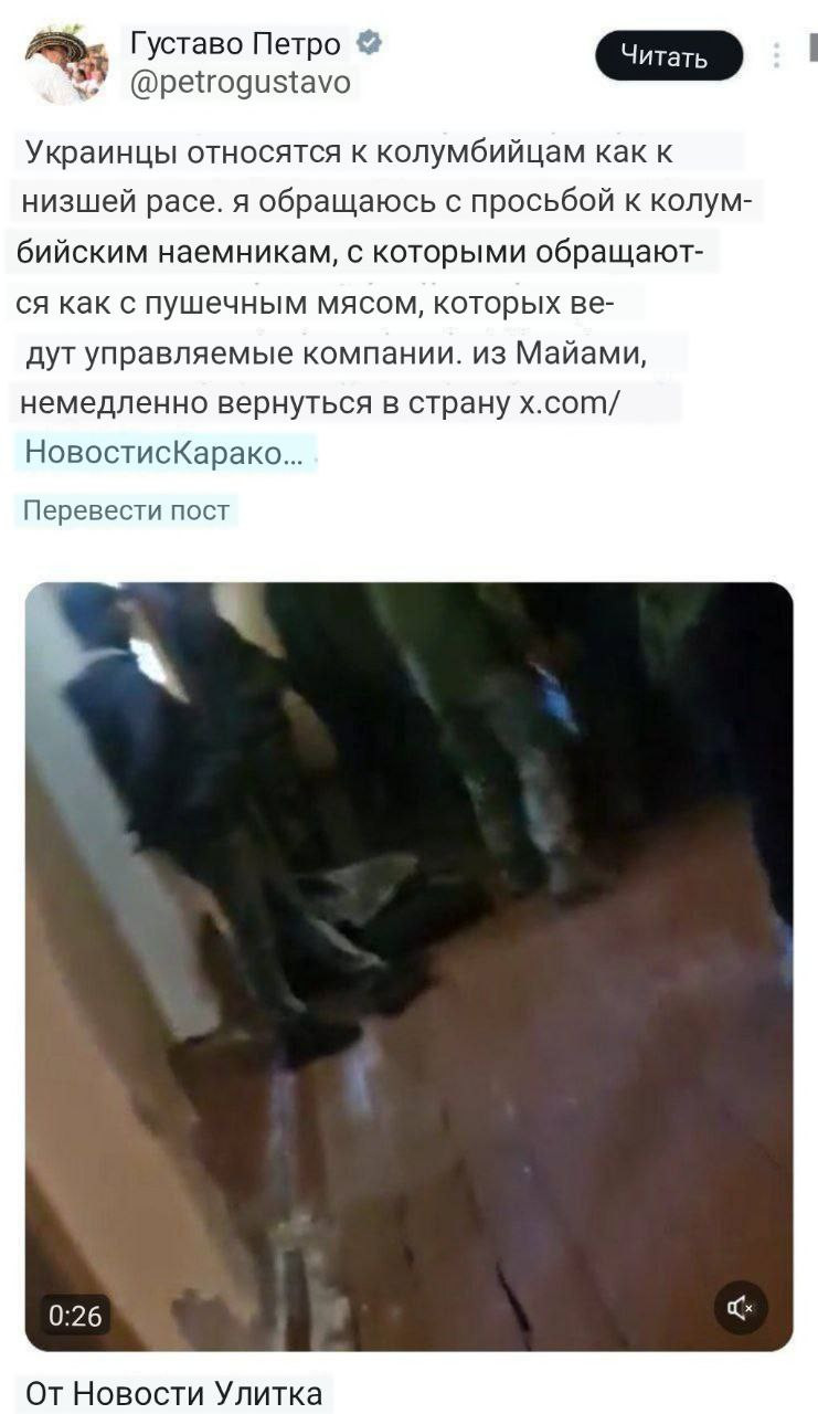 «Украинцы относятся к колумбийцам как к людям низшей расы. Я призываю колумбийских наемников, которых эксплуатируют в качестве пушечного мяса и которыми руководят корпорации из Майами, немедленно вернуться на родину».