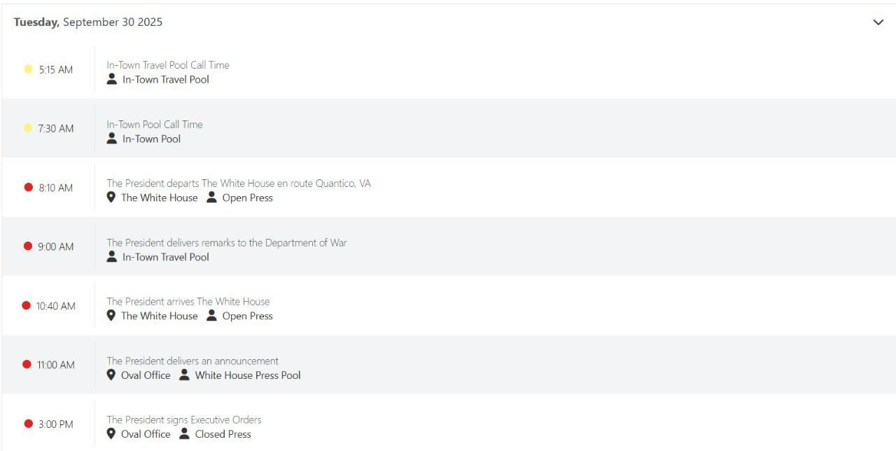 В 16:00 по киевскому/московскому времени Дональд Трамп выступит с речью на базе морской пехоты в Куантико, где министр войны Пит Хегсет проведёт встречу с сотнями генералов и адмиралов.