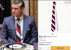 В интернете нашли точную модель галстука, в котором глава Пентагона Пит Хегсет, он же министр войны , появился на приеме с представителями УКРАИНЫ. Как выяснилось, в интернет-магазине аксессуар официально называется именно «галстук с российским флагом».