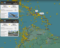 Два американских самолета-заправщика летят в сторону Венесуэлы.