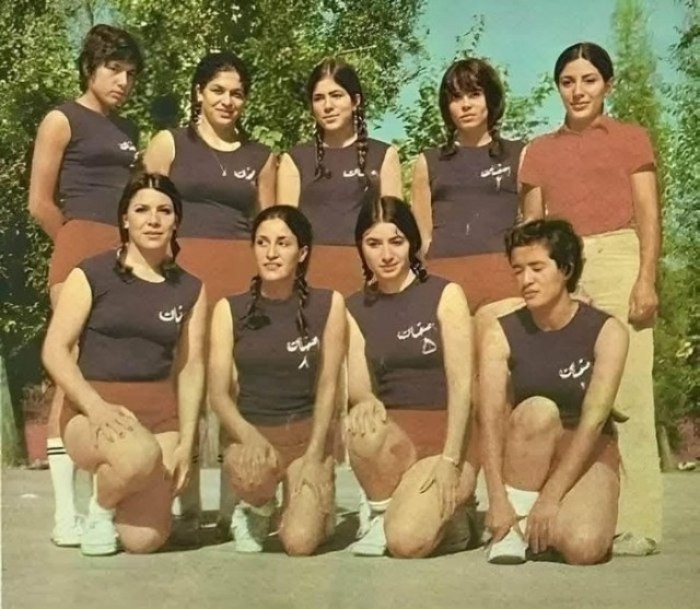 Иранки под афишей фильма с Софи Лорен и Марчелло Мастроянни «Счастье быть женщиной».