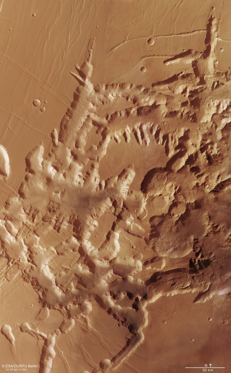 Лабиринт Ночи - одна из уникальных "достопримечательностей" Марса: это запутанная сеть глубоких каньонов, избороздивших поверхность планеты.