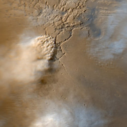 Облако над марсианской горой Арсия на снимке аппарата Марс–Экспресс.