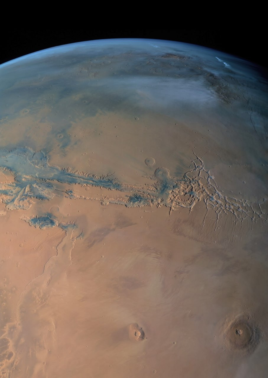 Тонкая марсианская атмосфера, сфотографированная аппаратом «Mars Express».