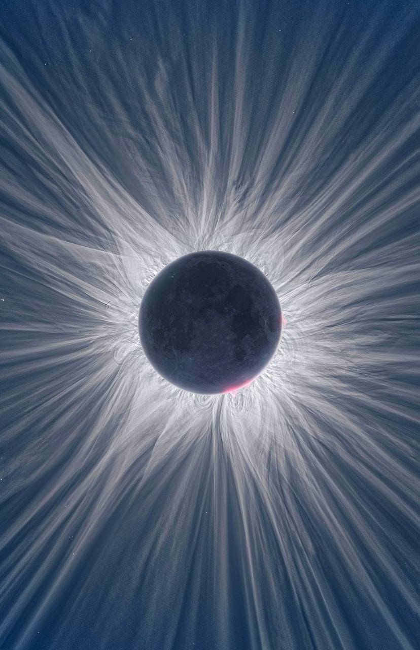Вид солнечной короны во время полного затмения в апреле 2024 года.