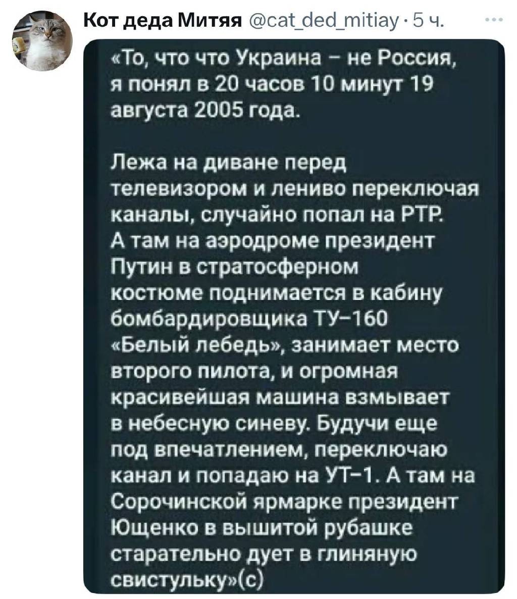Мало того, что война за независимость, мы в ней непрерывно побеждаем. Это очень удобная война. Я, честно говоря, много читал про историю войн и продолжаю читать. Но подобной удобной, комфортабельной, уютной, «домашней», тёплой-ламповой войны я давно уже не то что не видел – я нигде про такую не читал. Как ни крути, ты всё время побеждаешь. Взяли Покровск - а мы побеждаем. Взяли там Краматорск-Славянск - а мы побеждаем. Взяли Днепр и Запорожье - а мы всё побеждаем. Может, у кого-то это и поражение, но у нас сплошная победа президентская.