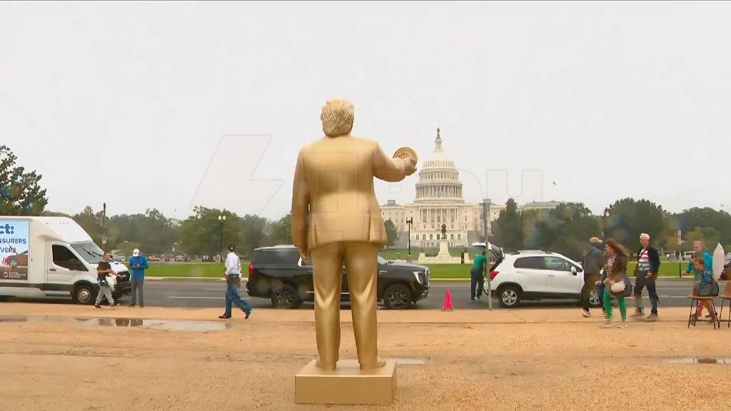 Золотую статую Трампа с биткоином в руке установили возле здания Капитолия в Вашингтоне