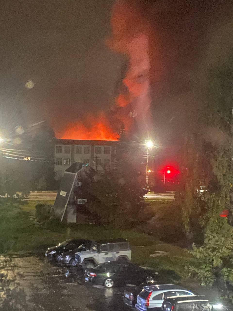 Масштабный пожар после удара по стоянке грузовых автомобилей в Сумах.