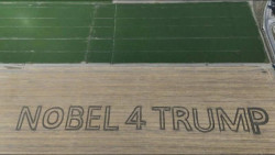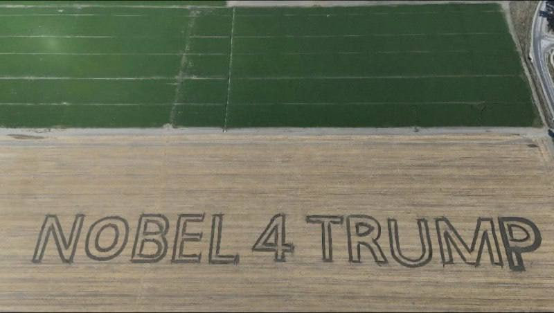 Комментарий №642566 ответить 09 Октября, 2025 12:28Картина под названием «Nobel 4 Trump», созданная фермером Петером Винером на поле кибуца Маоз Хаим в долине Бейт-Шеан у реки Иордан.