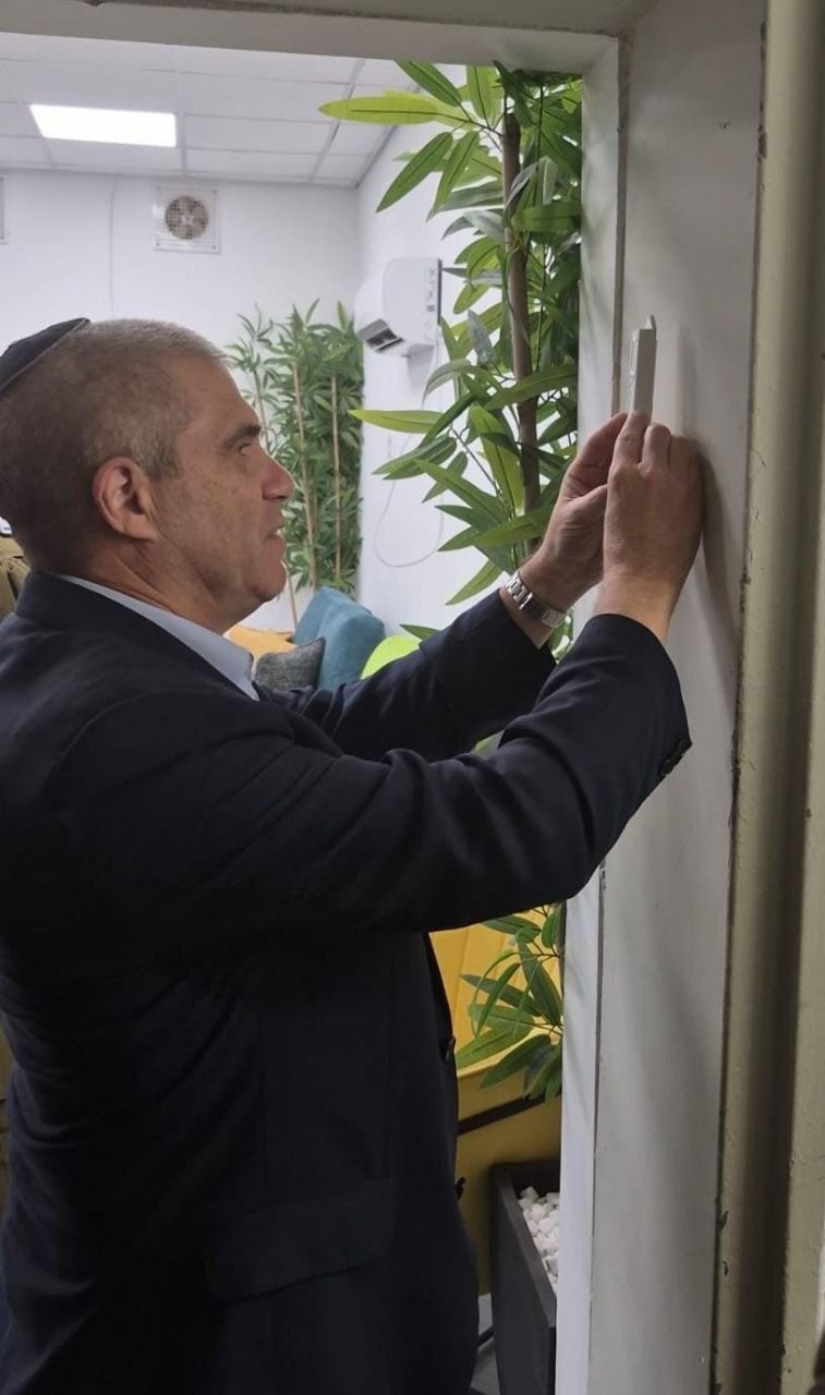 Координатор по делам пленных и пропавших без вести, бригадный генерал (в отставке) Галь Хирш установил мезузу у входа в комплекс приёма освобождённых заложников в Реим.