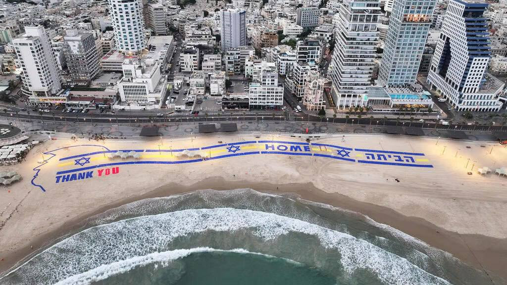 Комментарий №642974 ответить 13 Октября, 2025 12:33На пляже Тель-Авива появилось приветствие: «Спасибо, президент Трамп».