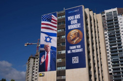 Комментарий №642977 ответить 13 Октября, 2025 12:36У въезда в Иерусалим установлен гигантский плакат с портретом Трампа на медали Нобелевской премии и словами: