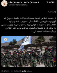 Комментарий №642825 ответить 11 Октября, 2025 22:37201-й корпус Халид бин Валид Исламской национальной армии Афганистана нанёс ответные удары по позициям пакистанской армии в провинциях Нангархар и Кунар на севере Пакистана в ответ на удары пакистанских ВВС по афганской столице Кабулу в четверг.
