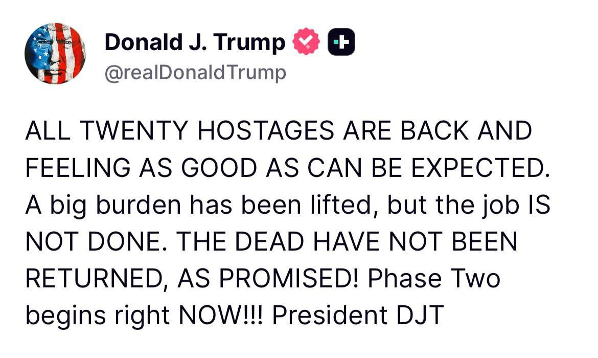 Трамп раскритиковал свою фотографию на обложке Time, посвящённой перемирию в Газе, пожаловавшись, что «исчезли» волосы, а на голове появилась «плавающая корона» — всё из-за странного ракурса съёмки снизу. Он назвал снимок «очень плохим» и потребовал отозвать его. Обложка подчёркивает его роль в соглашении между Израилем и ХАМАСом.