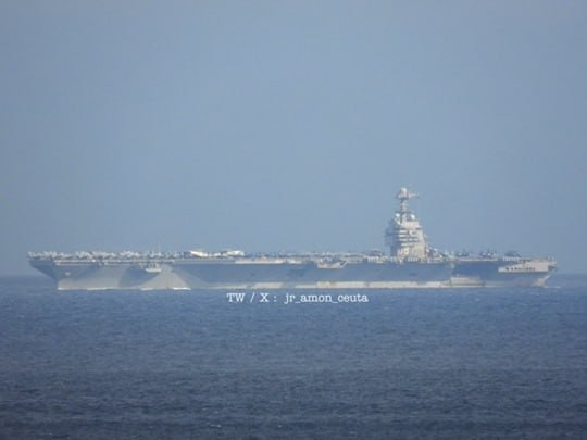 АВМА USS Gerald R. Ford (CVN-78) проходит Гибралтар. Фото сделано менее часа назад в испанском городе Тарифа.