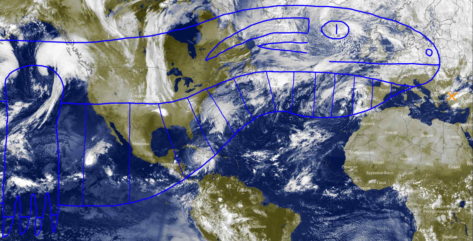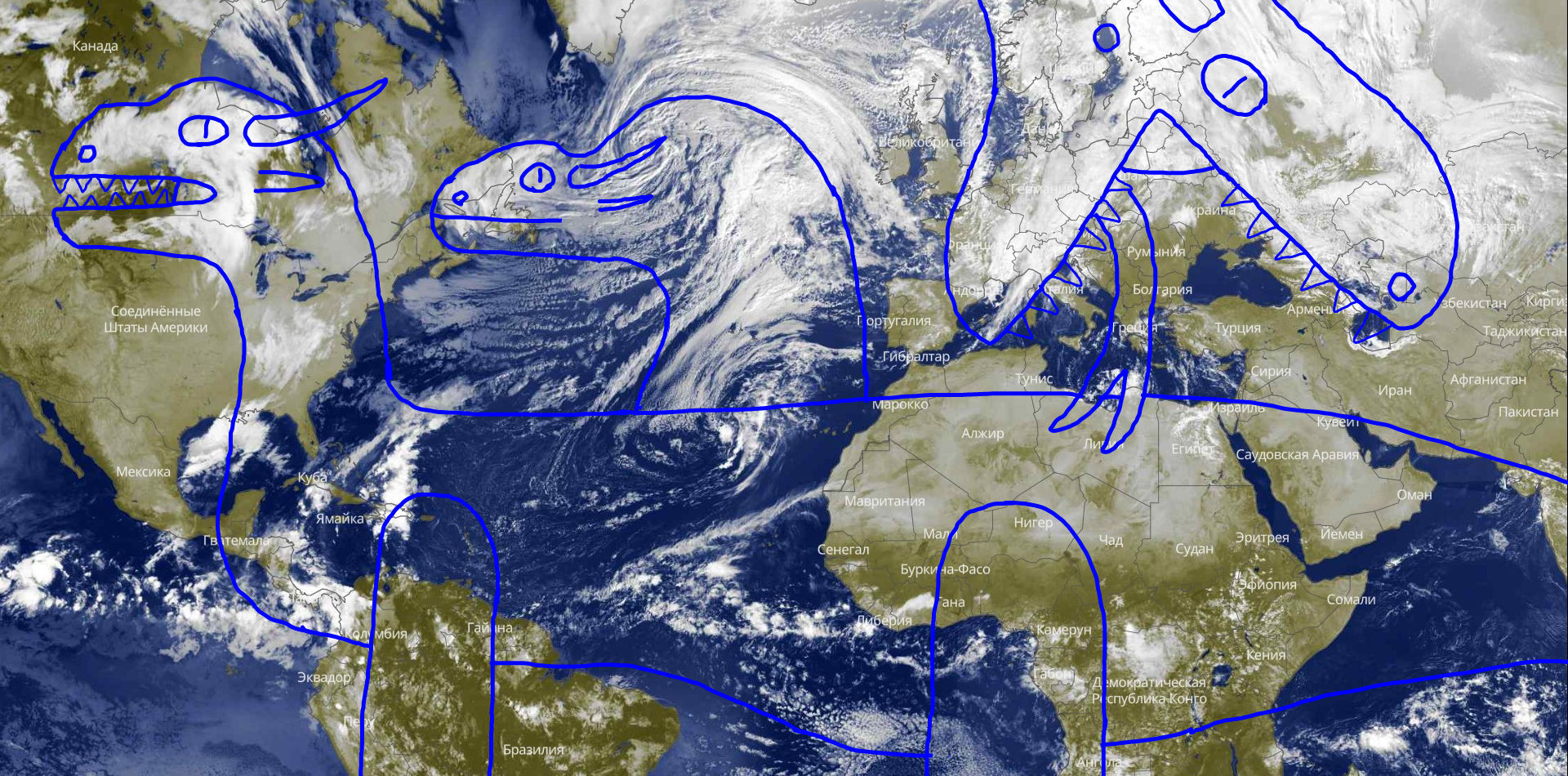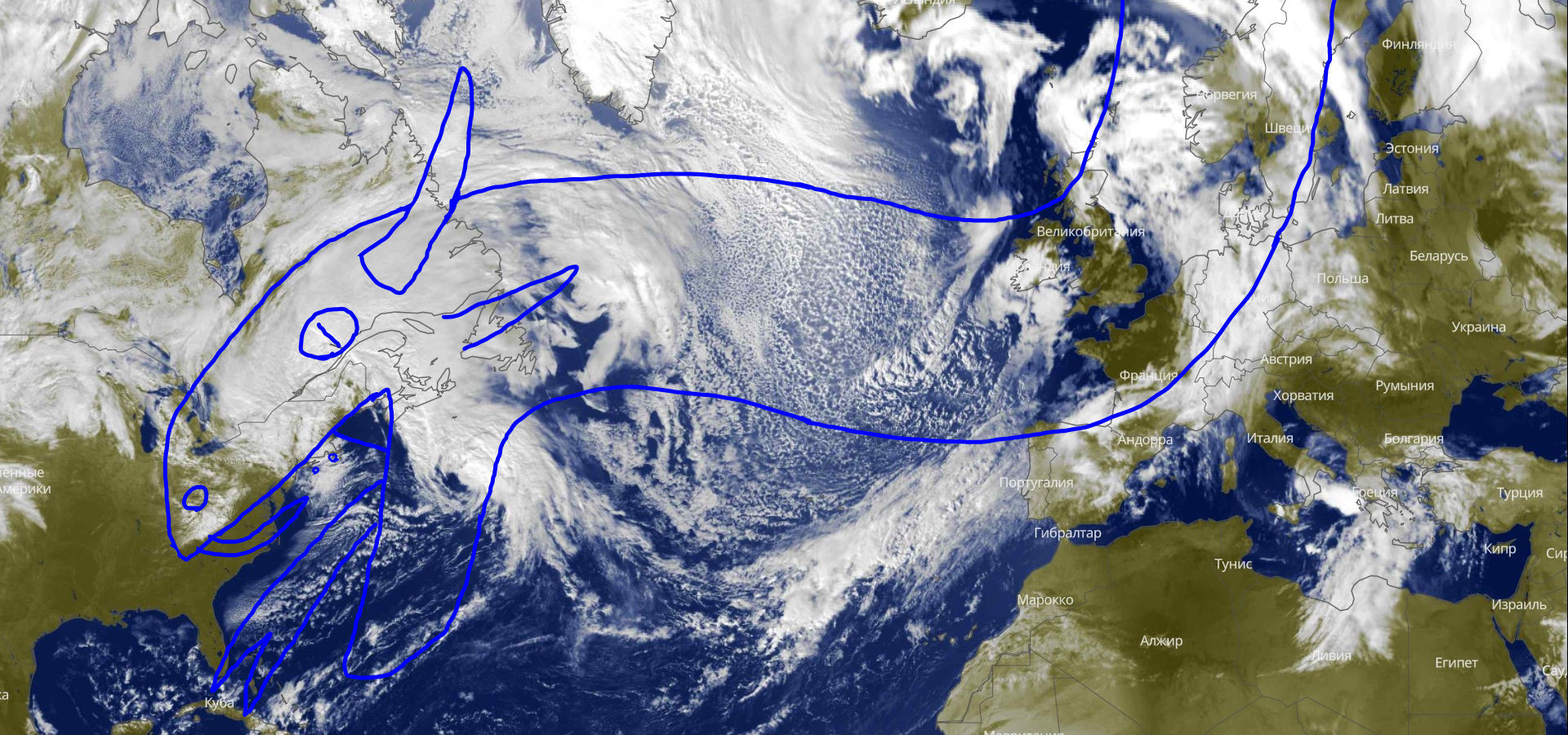 Ураган Мелисса приобрела вид своего создателя... Если отзеркалить ...
